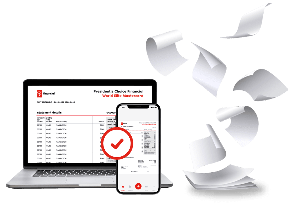 Sign up for an online account or download the PC Financial® mobile app and enrol in e-statements to easily track your spending, reduce clutter, and more.