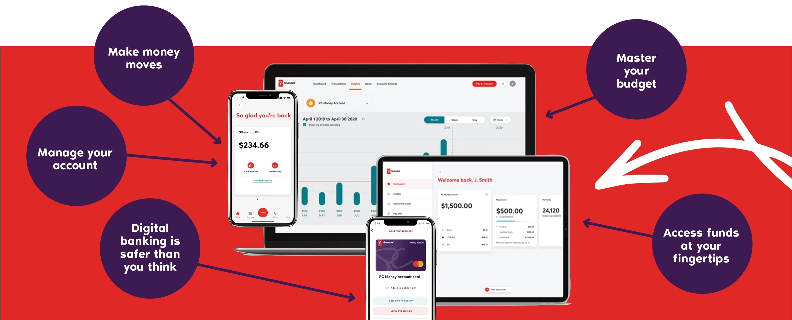 The best way to discover all the perks of digital banking is to download the PC Financial® mobile app (opens in a new window) today. Are you ready for digital banking that’s fast, easy, and safe? If you have not already signed up for a PC Money™ Account (opens in a new window) or a PC® Mastercard® (opens in a new window), sign up now!