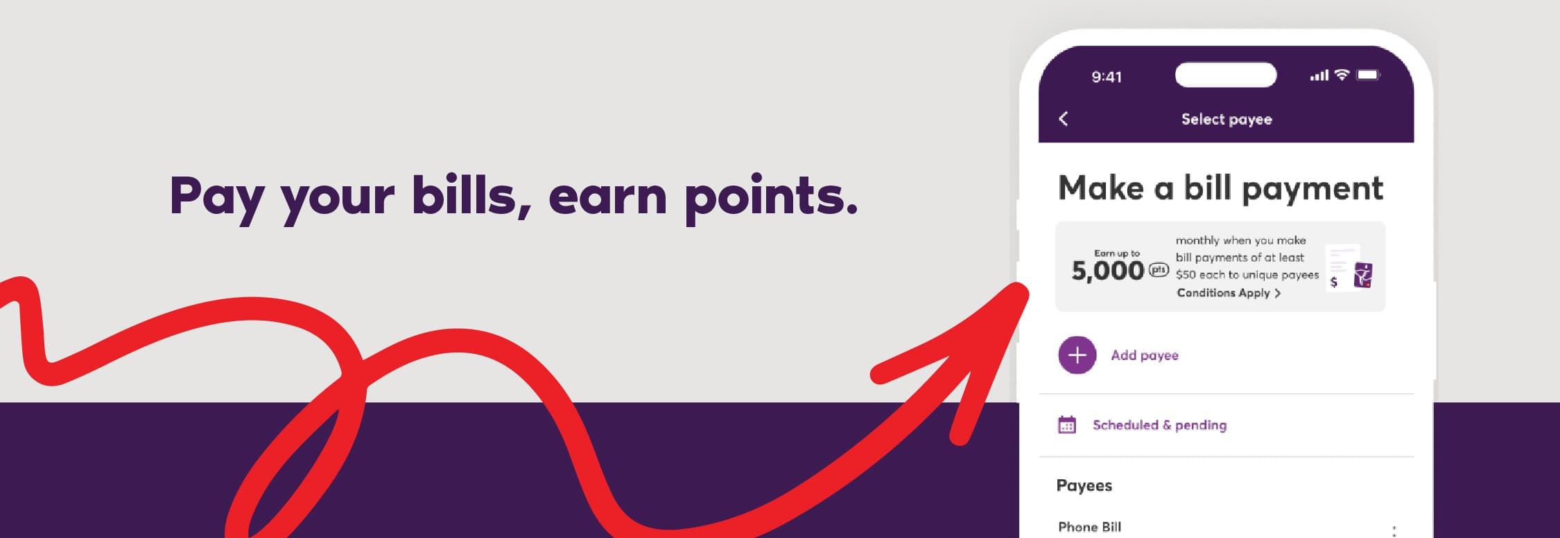 The beauty of the PC Money™ Account is that it rewards you for the everyday banking activities you’re already doing, including paying your bills (opens in a new window) . Paying internet, utilities, and even your PC® Mastercard® bills with your PC Money™ Account is easy. It can also earn you 1,000 points³ for each one, for up to five bill payments a month of $50 or more to unique payees—that’s up to 5,000 points per month! Set up recurring bill payments so you don’t miss a due date—or miss out on points.