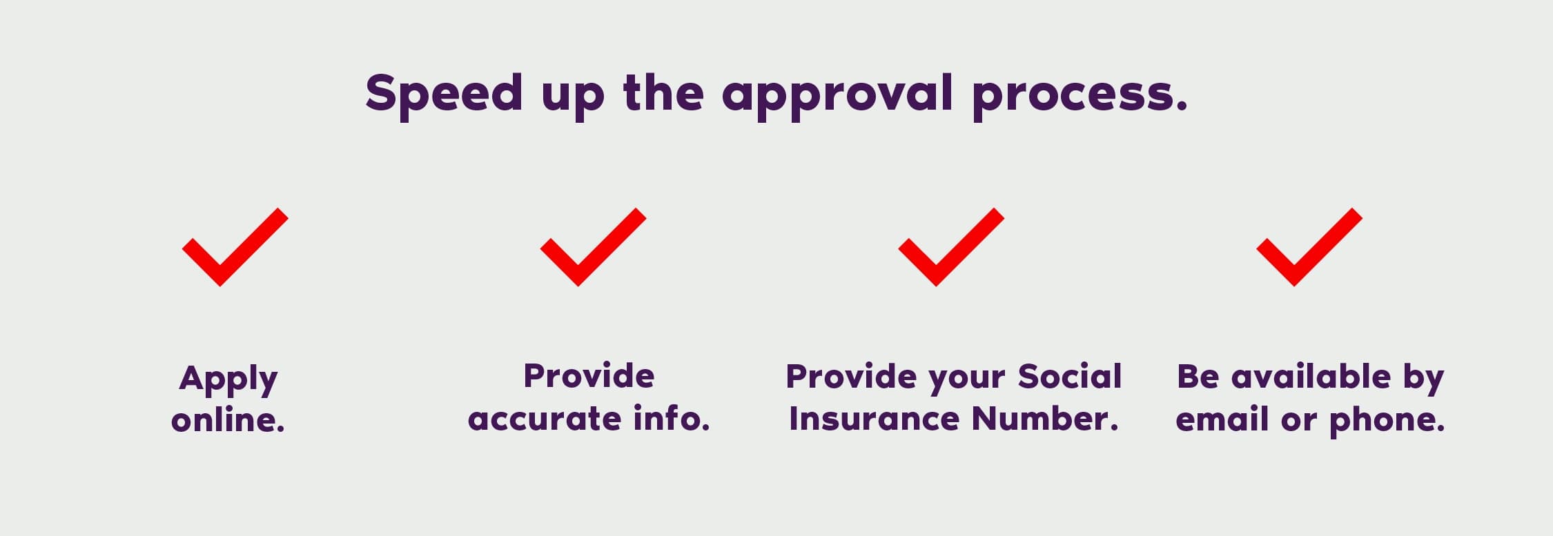 Use this checklist to gather everything you need before visiting the application page. Remember, the more accurate your application information is, the faster your approval process may be. You’ll be asked to provide the following information: