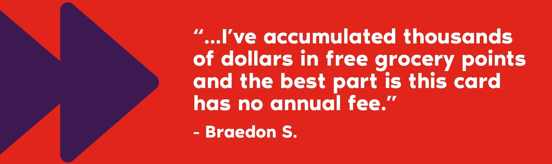 “Love this card for buying gas. You get 3 cents back in points per litre at Esso and Mobil gas stations. I’ve accumulated thousands of dollars in free grocery points and the best part is this card has no annual fee." – Braedon S