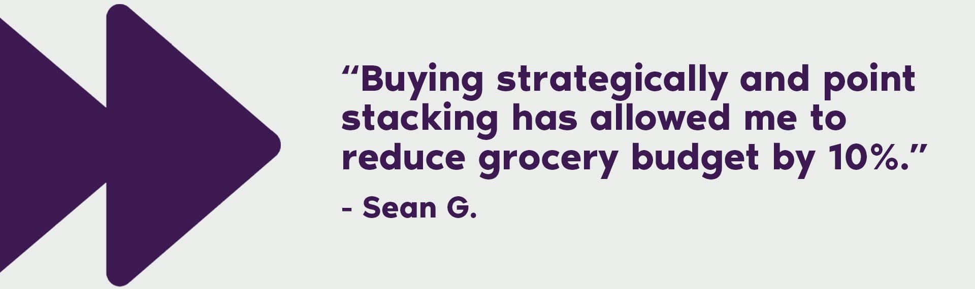 “Buying strategically and point stacking has allowed me to reduce grocery budget by 10%.” – Sean G.